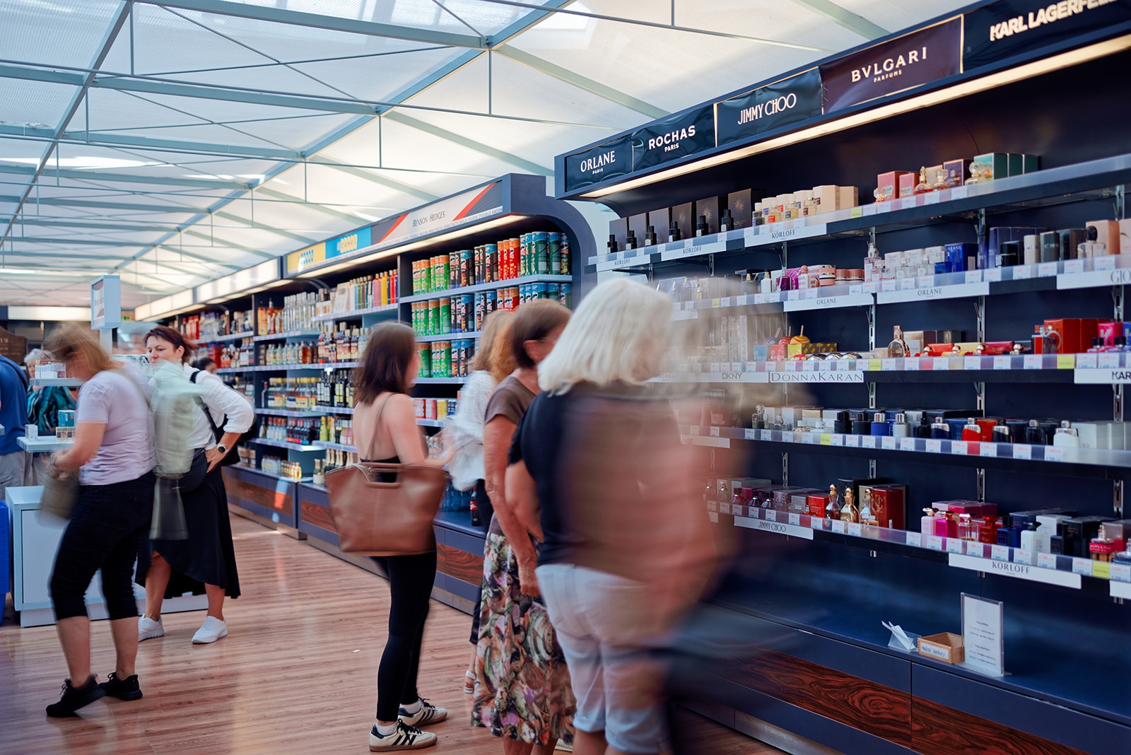 Široká nabídka parfémů, kosmetiky, alkoholických nápojů, tabákových